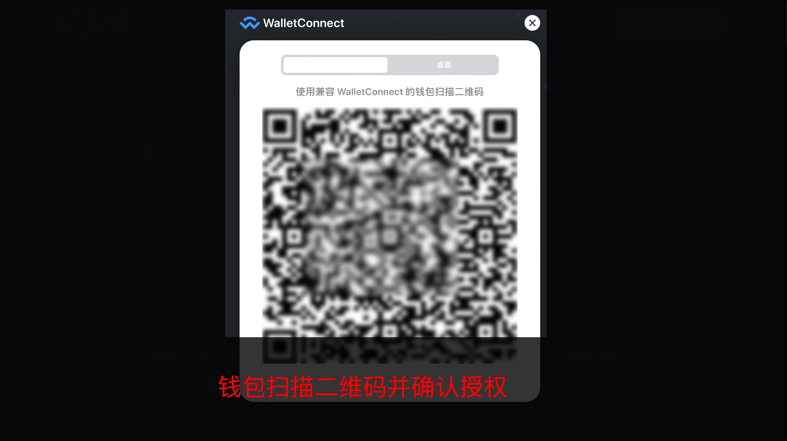 b. 没有“MetaMask”钱包,均选择“Wallet Connect”,并使用手机钱包扫码功能完成连接,并确认授权。