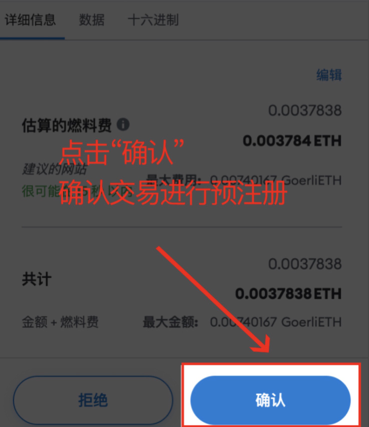 3. 完成预注册:点击“Request”按钮,并在您的钱包中确认交易,进行预注册。