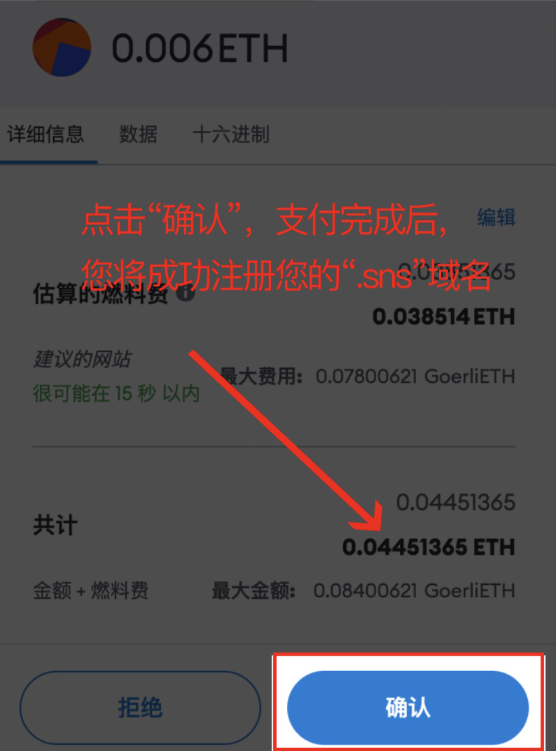 3. 充足的 ETH 余额:.sns域名价格+Gas费用。